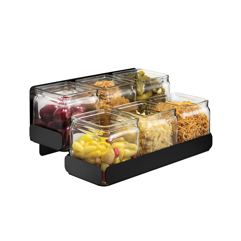 Диспенсер для приправ 2 яруса на 6 емкостей, 31,8х21,6см h13,6см, сталь/стекло