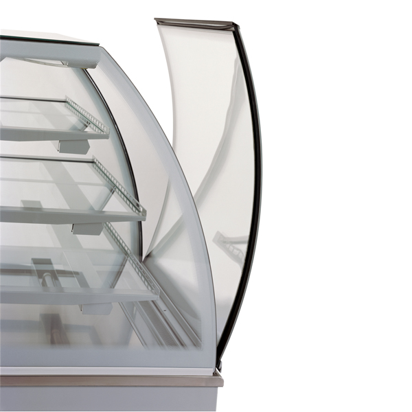 Переднее гнутое двойное закаленное стекло, откидывается для удобной очистки, задние дверцы - изоляционные раздвижные,